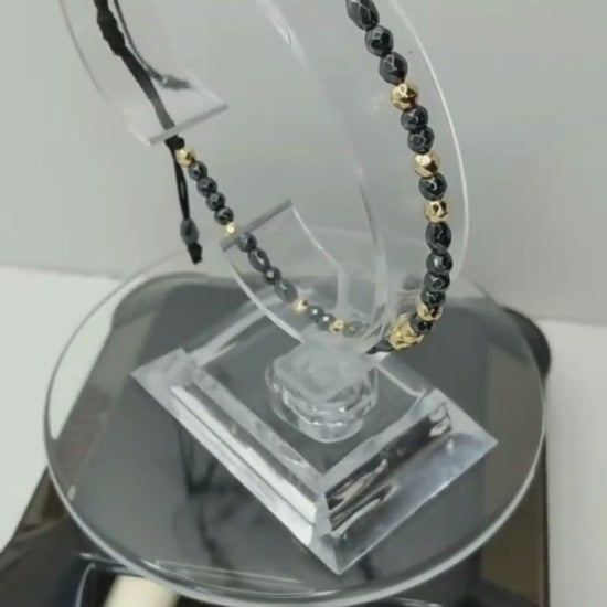 Minimalistisches Armband mit Hämatitperlen, Morsecode-Botschaft & verstellbarem Band – ein Geschenk mit tiefer Bedeutung.